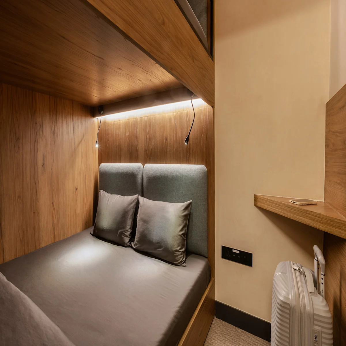 Space for two in our cosy, private cabin with everything you need for a peaceful sleep in Lima Airport.